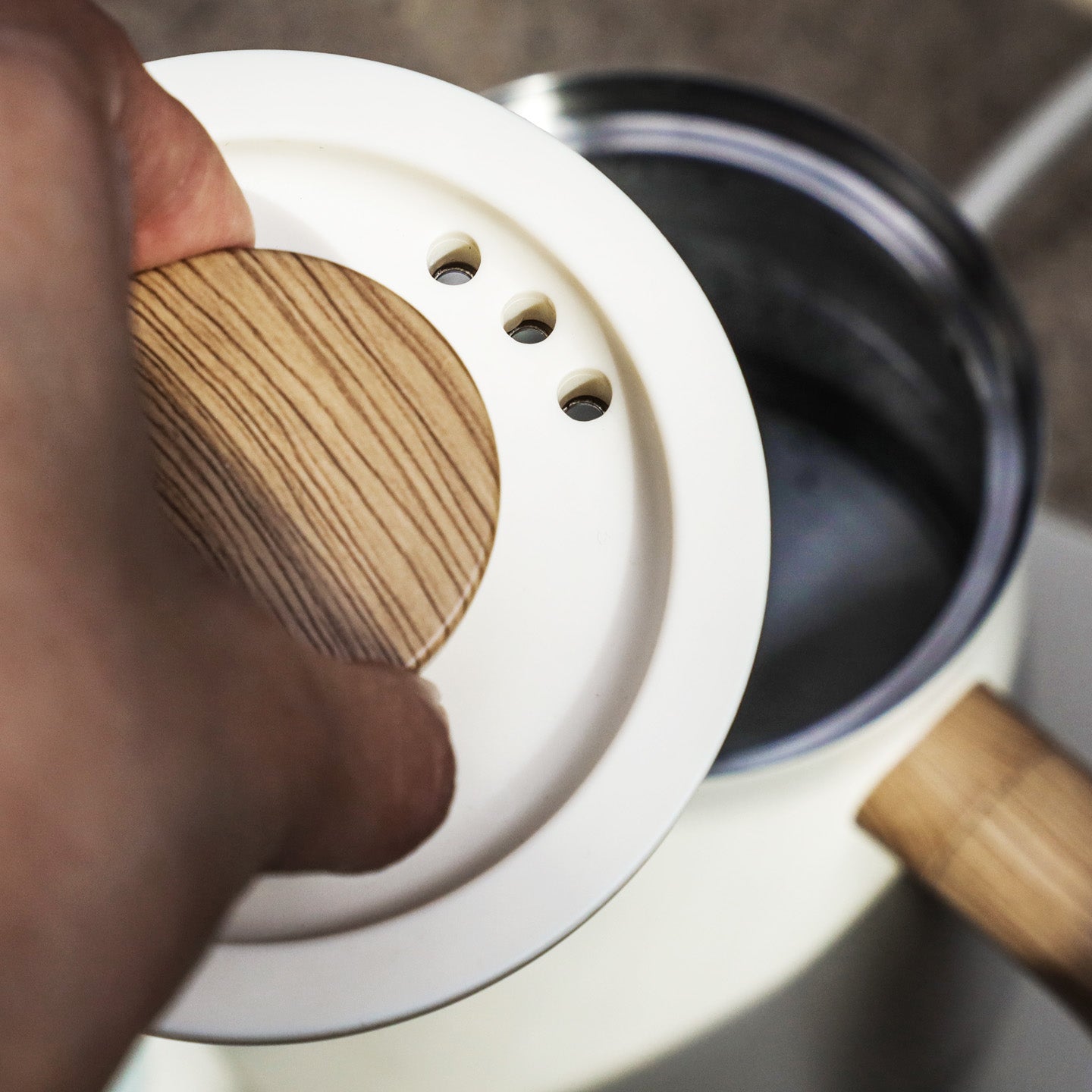 - Deckel mit Sicherheitsventil: Mit einem Druckablassventil ausgestattet, das Sie vor heißen Spritzern und Dampf schützt. Mit dieser cleveren Funktion können Sie sich beruhigt zurücklehnen.