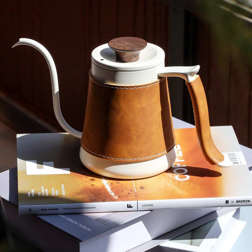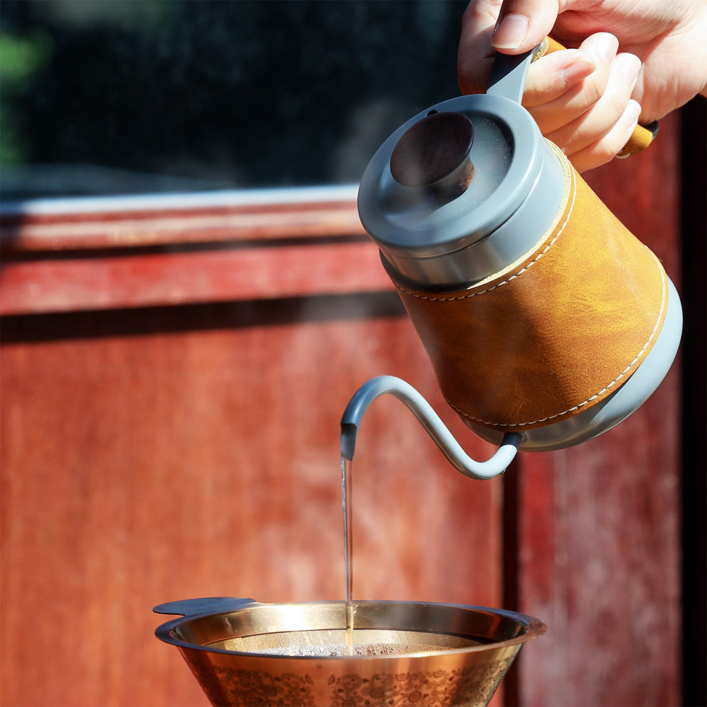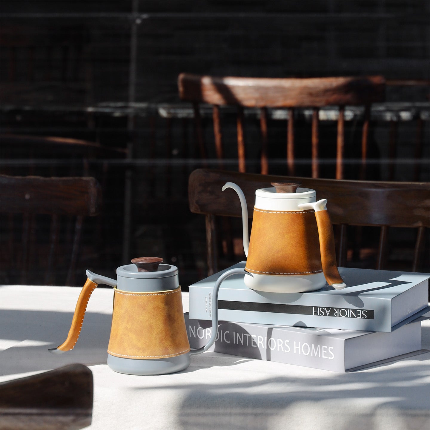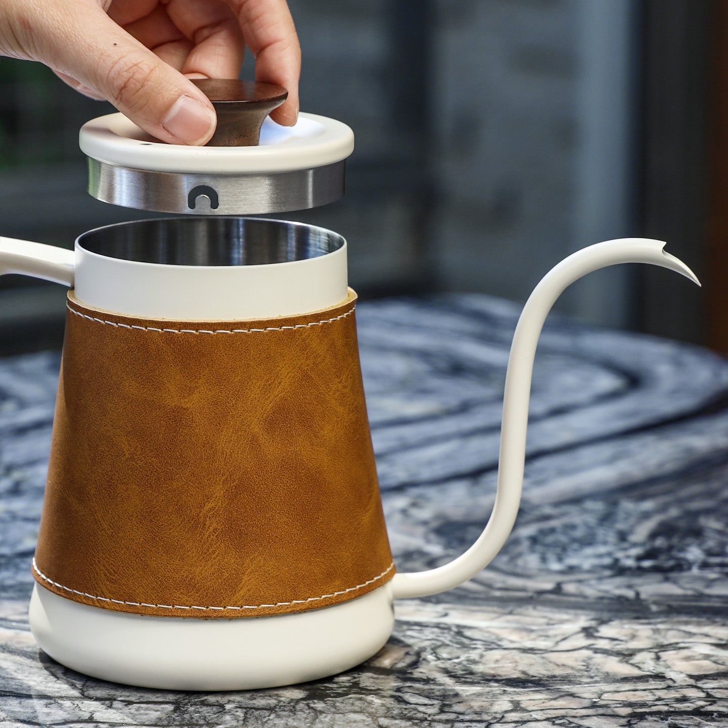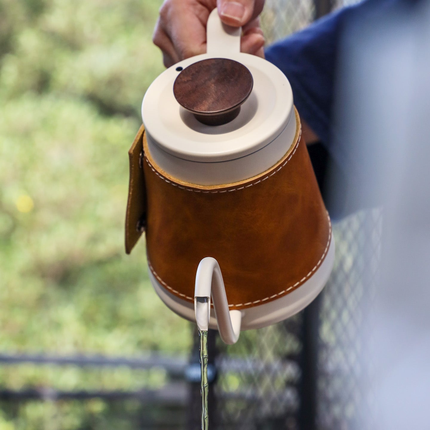 - S-förmiger Ledergriff: Dieser Griff wurde für ergonomischen Komfort und Hitzebeständigkeit entwickelt und ahmt einen Schwanenschwanz nach (daher der Name „Schwanenhals“) und bietet einen stabilen Halt für kontrolliertes Ausgießen.