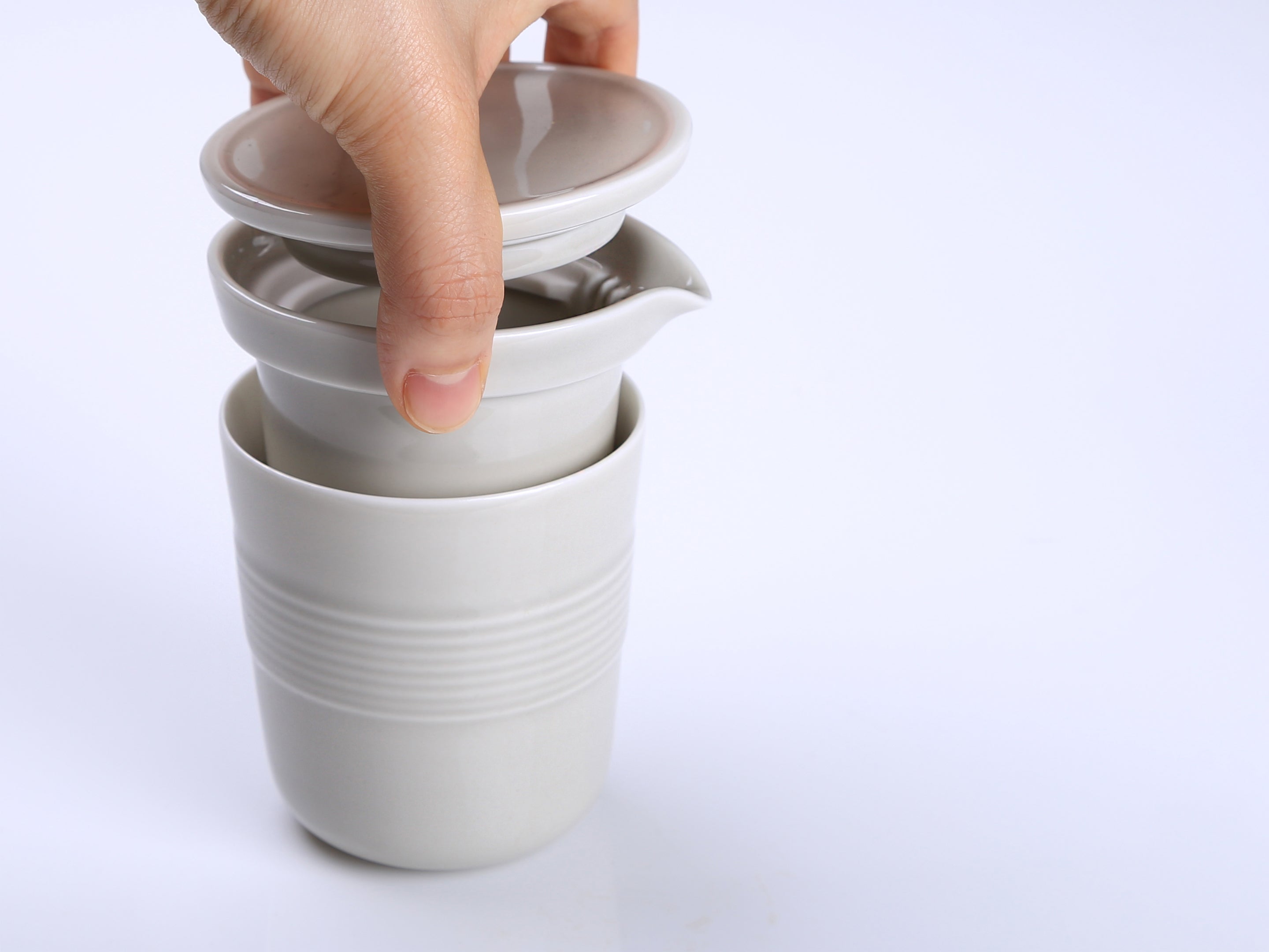 ティーポットとカップは積み重ね可能です。