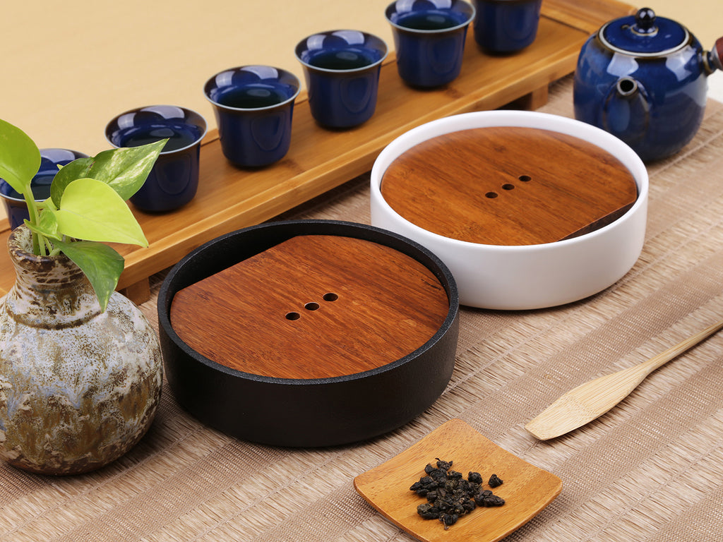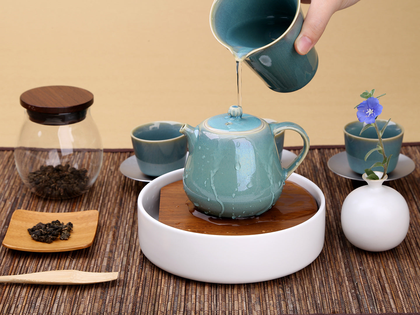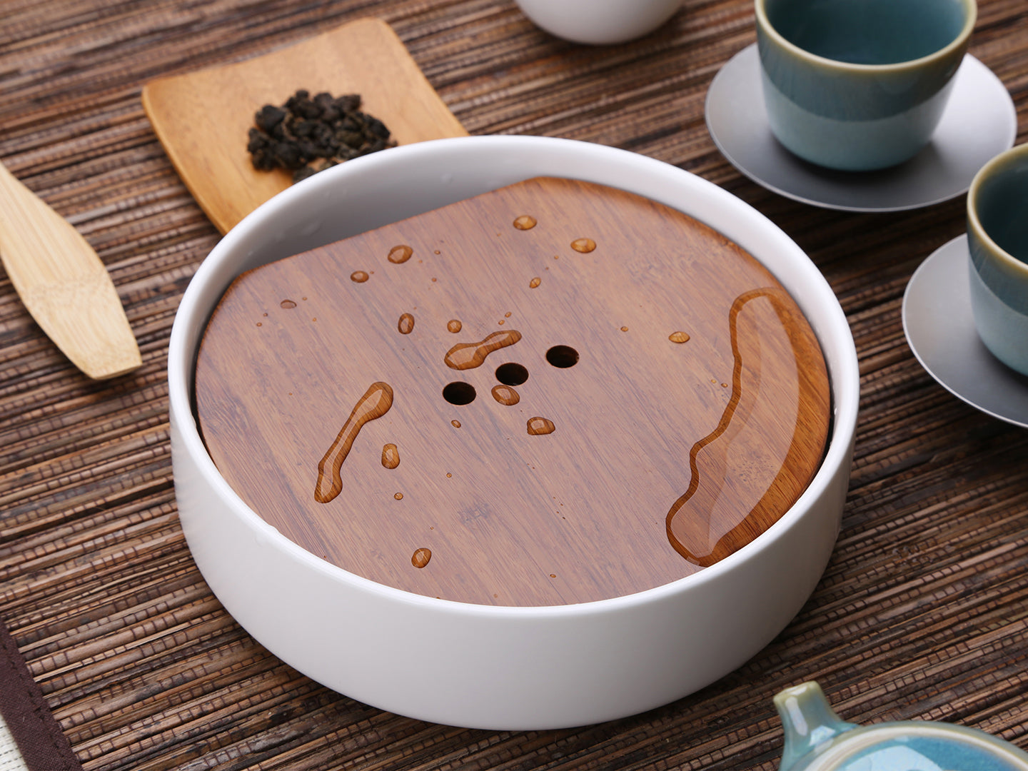 The Moon Light Tea Tray is a Chinese gongfu tea tray with an elegant color and a classic shape. It can match any style of teapot set. When you use it with various types of teaware, you'll get a variety of feelings. It will also be easy to clean after you have enjoyed your tea time, thanks to the ceramic body and removable bamboo tray.