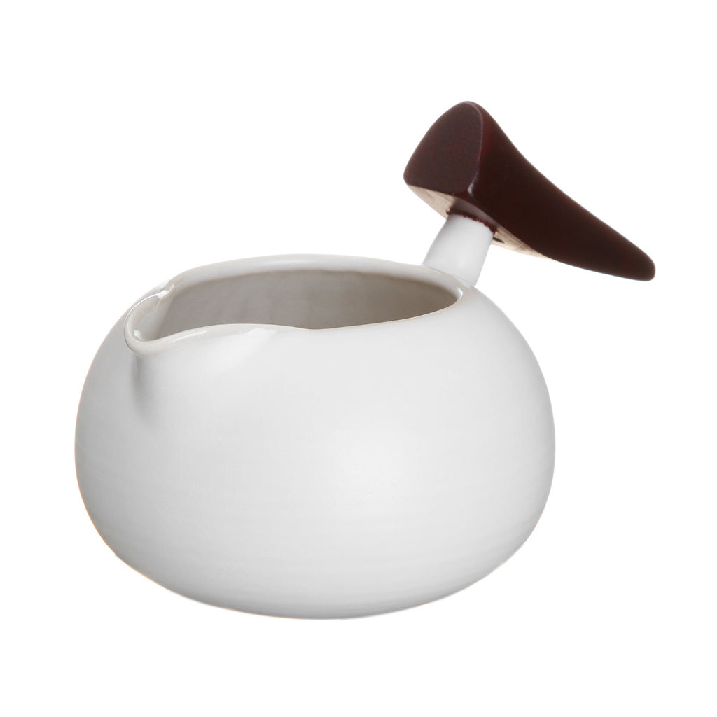 The Cicada-style wooden grip of the Twilight tea pitcher is more smooth when pouring tea and fits ergonomics. In addition, the thread design on the wooden handle made it more cohered and secure. The use of a cicada-style wooden handle on it gave the product a more streamlined aesthetic and a richer " Zen " concept.